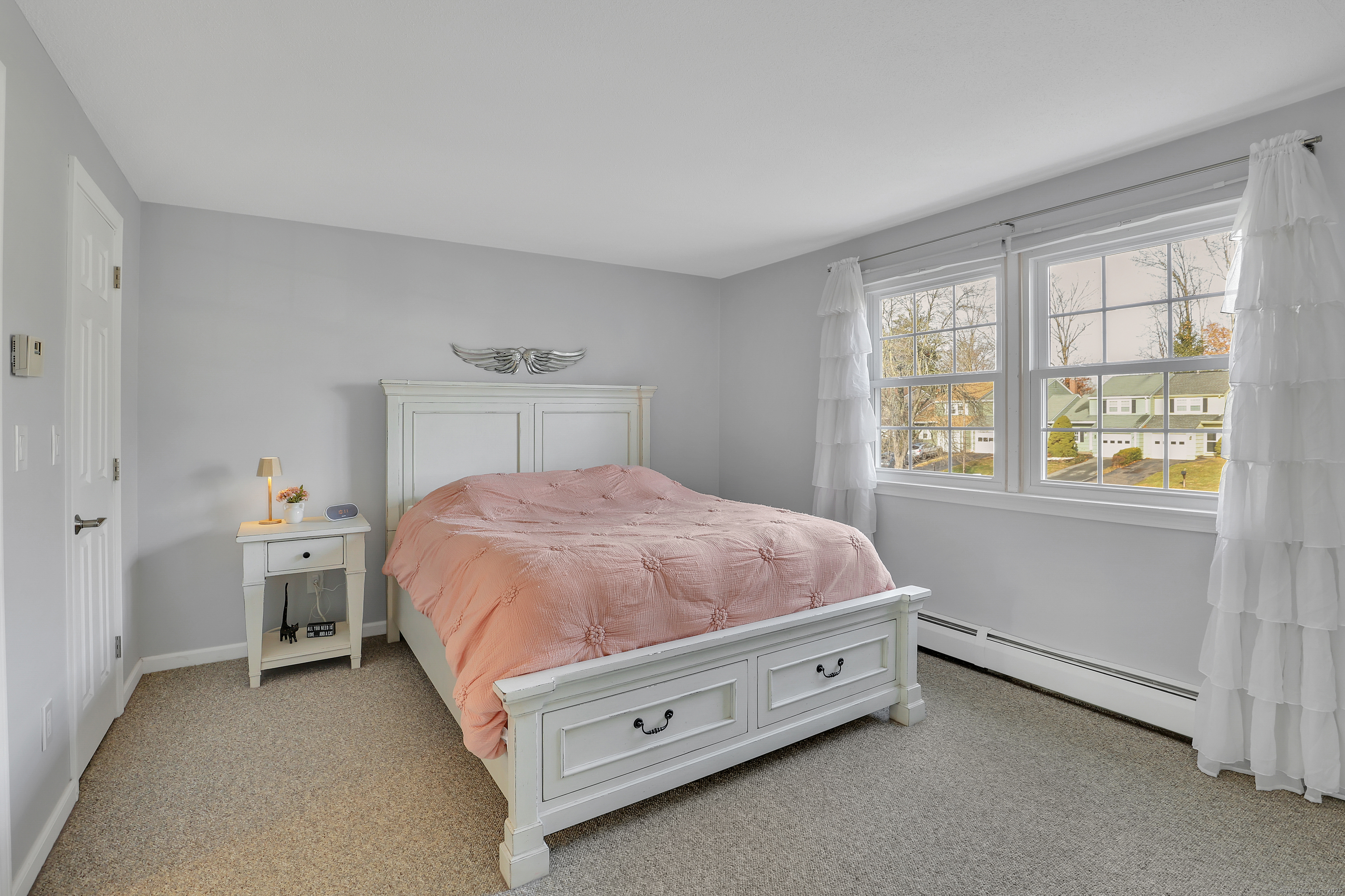 Welcome to 25 Pebble Court in Newington. This move-in ready 2 bedroom, 1.5 bathroom, 1 car garage home offers an open concept first floor with a white washed wood burning fireplace, quality laminate flooring, an updated half bath, and fully equipped kitchen with a pantry. Your washer and dryer are also conveniently located on the first level. Off the living room is access to your private outdoor space with a beautiful view through brand new Harvey windows. Upstairs you will find two spacious bedrooms. The primary bedroom offers a walk-in closet, private access to the full bath, and additional attic storage. This home is located on a quiet cul-de-sac yet close to all the amenities the Berlin Turnpike has to offer. Don't miss your chance to own this beautifully kept Newington home - move right in and make it yours!
